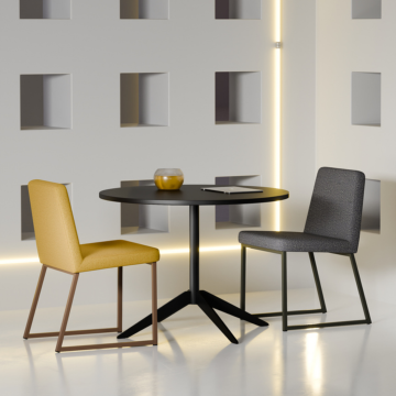 Conceito: Em um mundo onde o excesso de estímulos se tornou rotina, surgiu a necessidade de reencontrar o essencial. Aquilo que permanece quando tudo o que é superficial desaparece. Foi com esse propósito que nasceu Vitrine. Inspirada pela dinâmica dos ambientes contemporâneos, onde o trabalho se mistura com o lar, o coletivo com o individual, o ritmo com a pausa, Vitrine foi pensada para ser fluida. Com sua estrutura metálica e seu estofado confortável, ela se adapta ao espaço e à vida que acontece nele. Ela se destaca pelo equilíbrio. Cadeira Vitrine. O essencial em forma.
