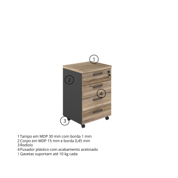 Gaveteiro Móvel 4 Gavetas