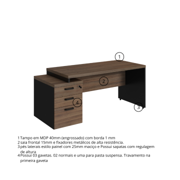 A Linha Office40 foi desenvolvida para oferecer robustez, sofisticação e funcionalidade em ambientes corporativos e home offices. Com design contemporâneo e proporções marcantes, a linha se destaca pelo seu tampo engrossado de 40mm, que confere imponência e elegância ao mobiliário, tornando cada peça o ponto de destaque do espaço de trabalho.