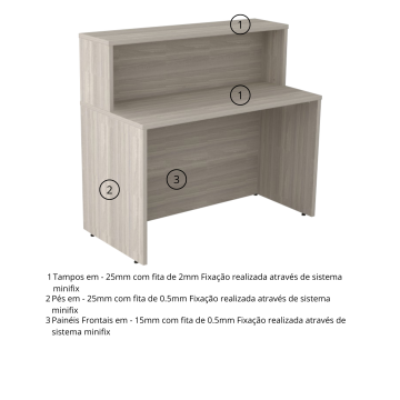 As mesas possuem tampos amplos e resistentes, ideais para garantir conforto e produtividade, enquanto os armários oferecem excelente capacidade de armazenamento, mantendo o ambiente sempre organizado e funcional. Suas estruturas são confeccionadas em painéis de madeira de alta qualidade, com acabamento texturizado que proporciona um toque sofisticado e facilita a limpeza. O conjunto é complementado por dobradiças e puxadores metálicos, garantindo resistência e durabilidade ao uso contínuo.